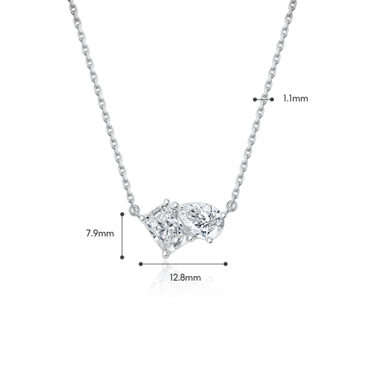 TDG 10K White Gold Lab-Grown Radiant & Pear Cut Diamond Two-Stone Necklace