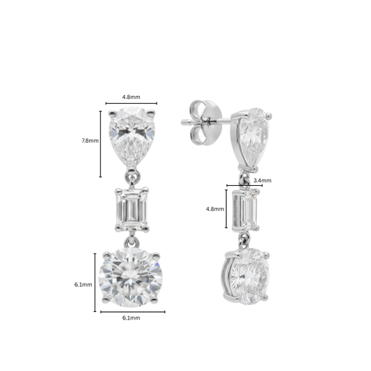 TDG 10K White Gold Multi-Shape Diamond Drop Earrings