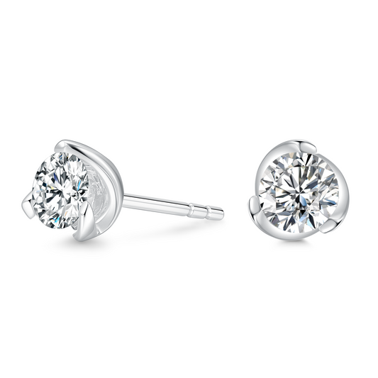 10K Gold Rotating Setting Lab Grown Round-cut Diamond Stud Earrings
