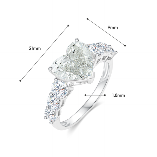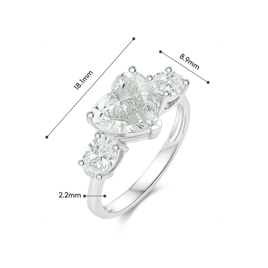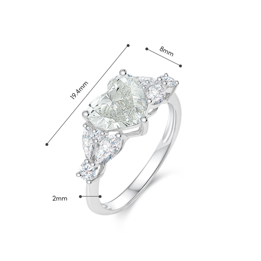 TDG 18K White Gold Lab-Grown Heart Diamond Ring with Side Pear Diamonds – IGI Certified