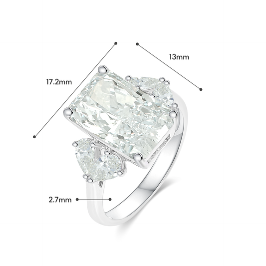 TDG 18K Gold Lab-Grown Radiant Cut Diamond Ring with Heart-Shaped Side Stones and IGI Certificate