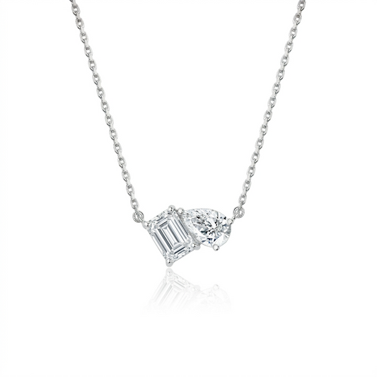 TDG 10K White Gold Lab-Grown Radiant/Emerald & Pear Cut Two-Stone Diamond Necklace
