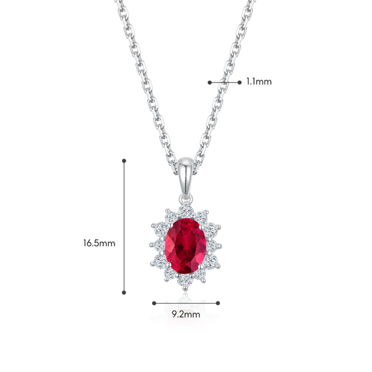 TDG 10K White Gold Lab-Grown Ruby & Diamond Halo Pendant Necklace