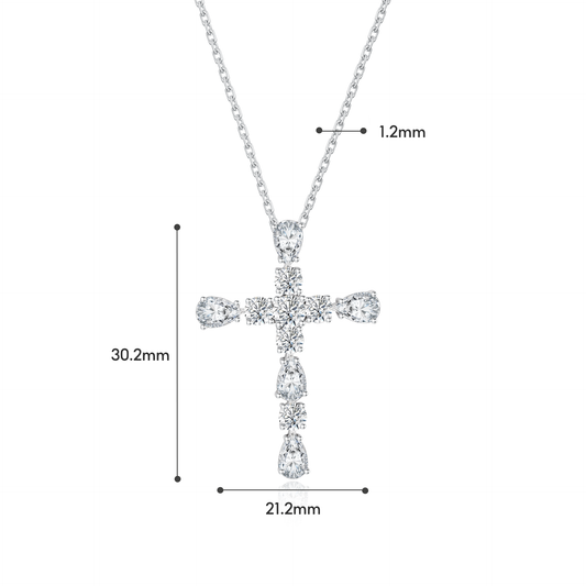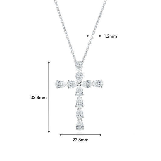 TDG 10K White Gold Lab-Grown Diamond Pear-Cut Cross Pendant Necklace