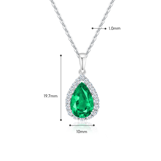 TDG 10K White Gold Lab-Grown Pear-Shaped Green Gemstone & Diamond Halo Pendant Necklace