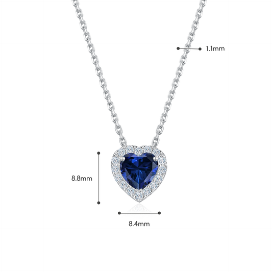 TDG 10K White Gold Lab-Grown Blue Sapphire Heart Pendant Necklace