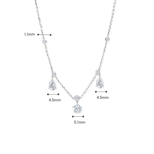 TDG 10K White Gold Lab-Grown Diamond Mixed Cut Drop Necklace