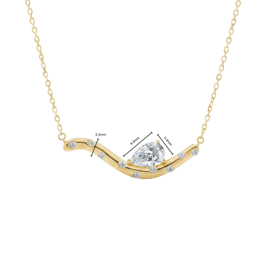 TDG 10K Yellow Gold Pear Diamond Wave Necklace