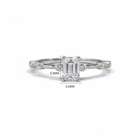 TDG 10K White Gold Lab-Grown Emerald Cut Diamond with Baguette Side Stones Ring