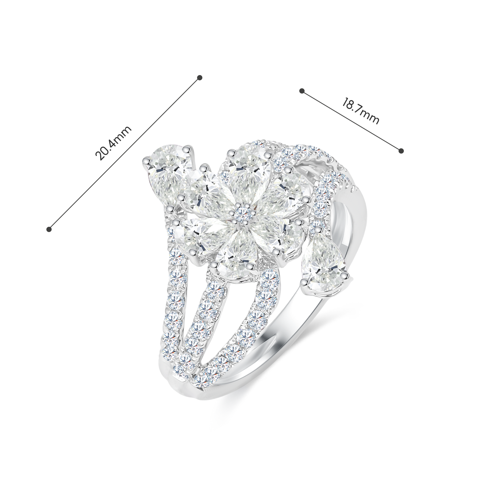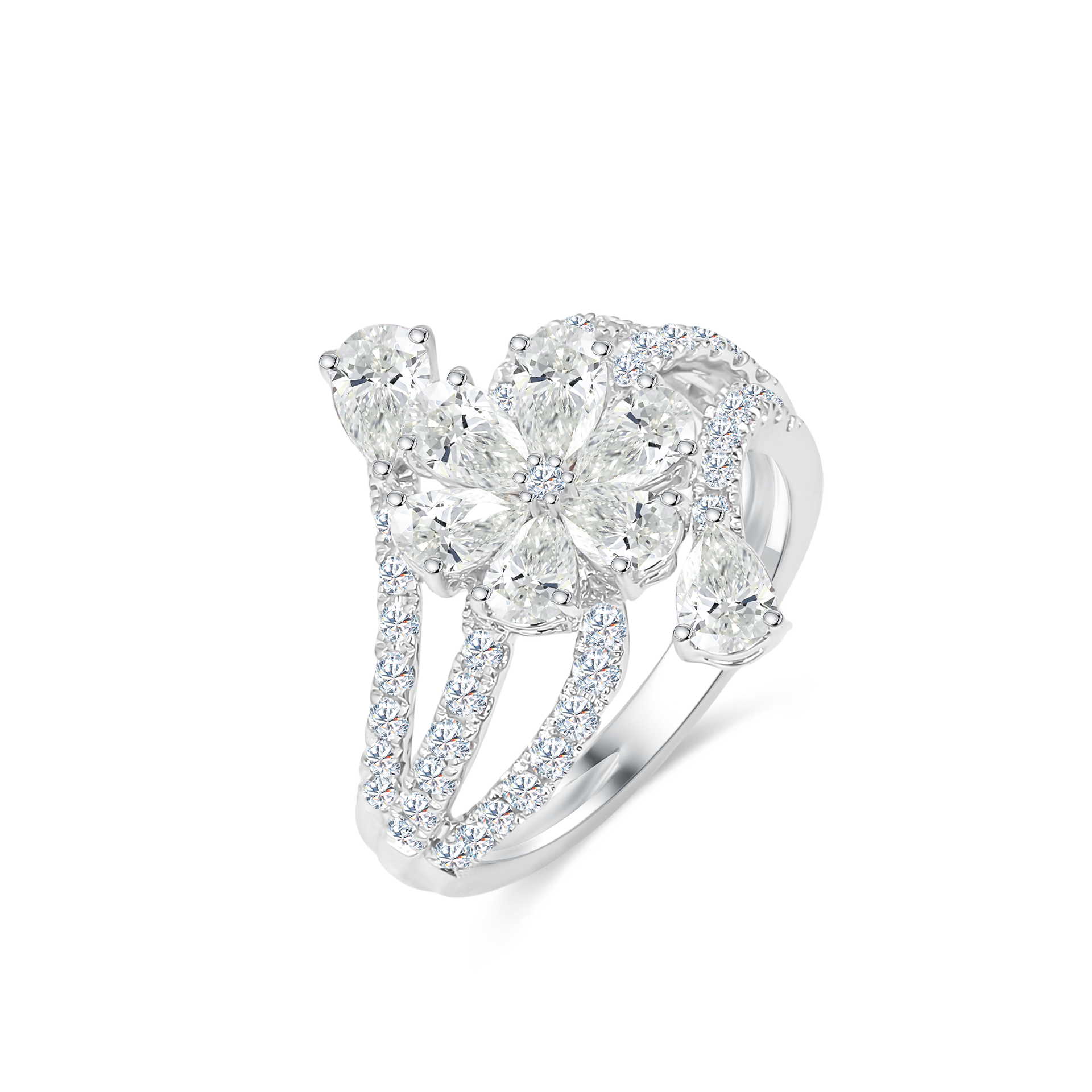TDG 10K Gold Flower-Shaped Cascade Lab-Grown Diamond Ring