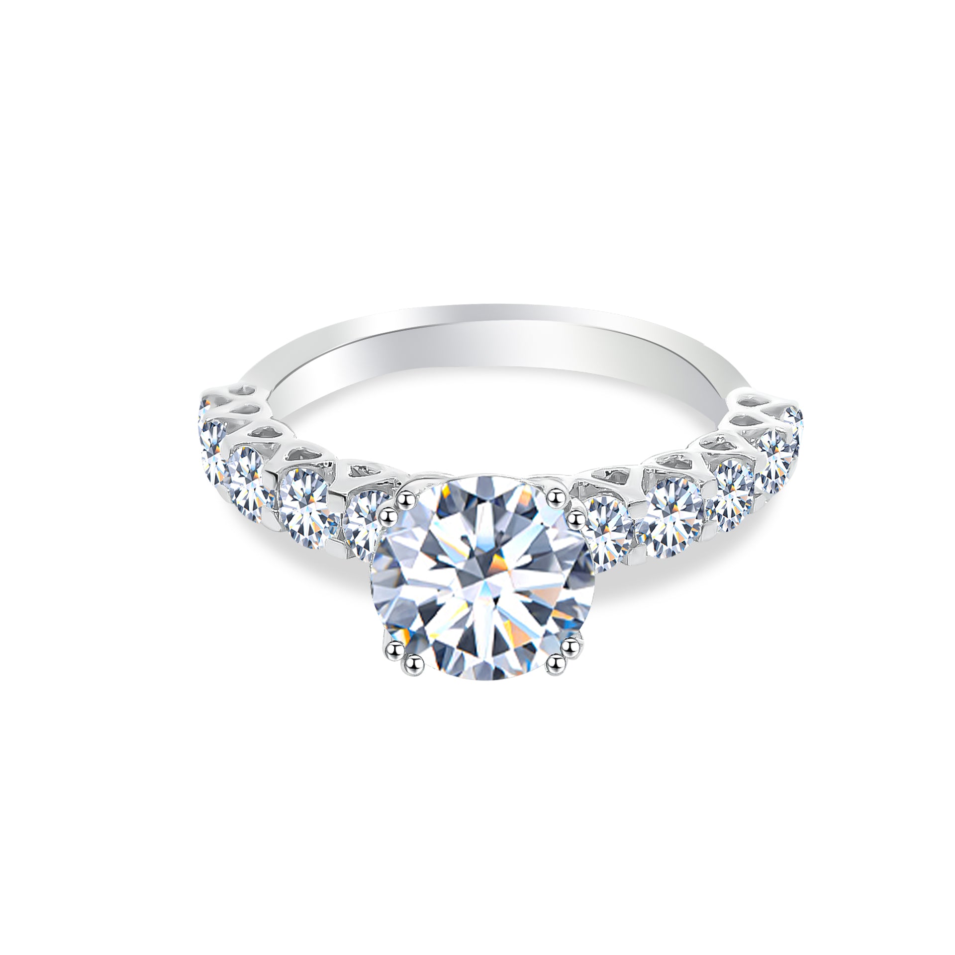TDG 10K White Gold Lab-Grown Diamond Round Brilliant Cut Ring