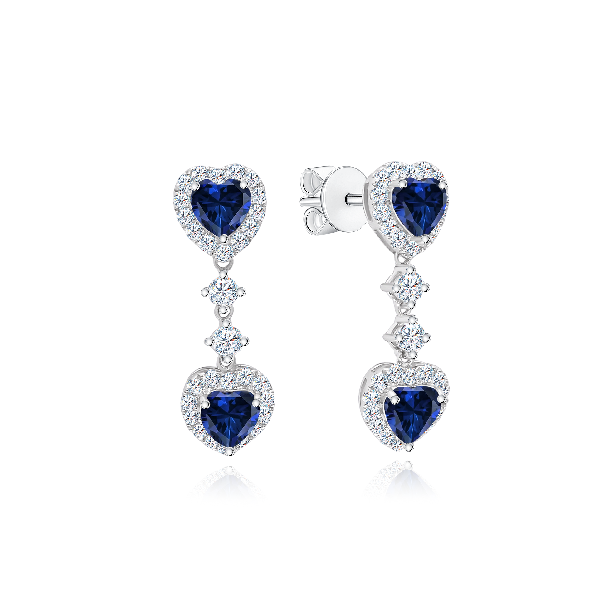 TDG 10K White Gold Blue Heart Gemstone & Lab-Grown Diamond Drop Earrings