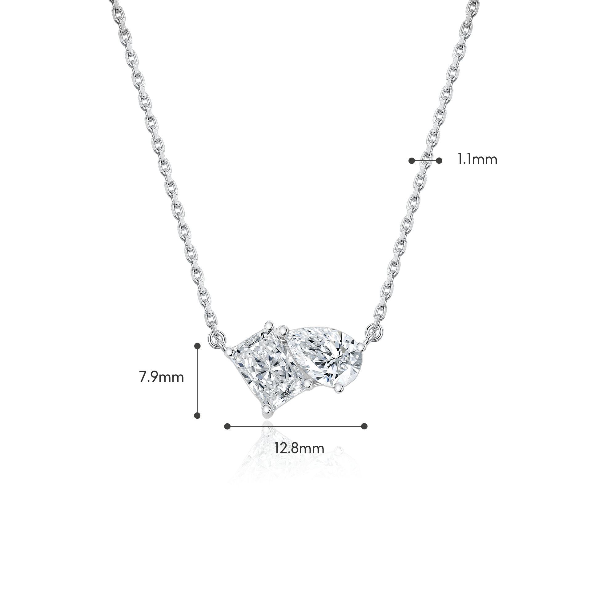 Experience timeless brilliance with the TDG 10K White Gold Lab-Grown Radiant & Pear Cut Diamond Two-Stone Necklace.