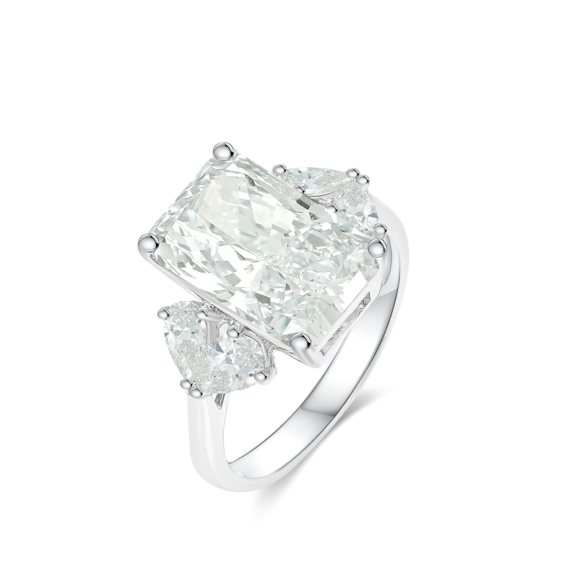 Celebrate love with brilliance and elegance in the TDG 18K Gold Lab-Grown Radiant Cut Diamond Ring. At its heart lies a captivating radiant-cut lab-grown diamond, flanked by two perfectly matched heart-shaped lab-grown diamonds. Expertly crafted in luxurious 18K white gold, this design marries modern glamour with timeless romance—perfect for engagements, anniversaries, or cherished moments.